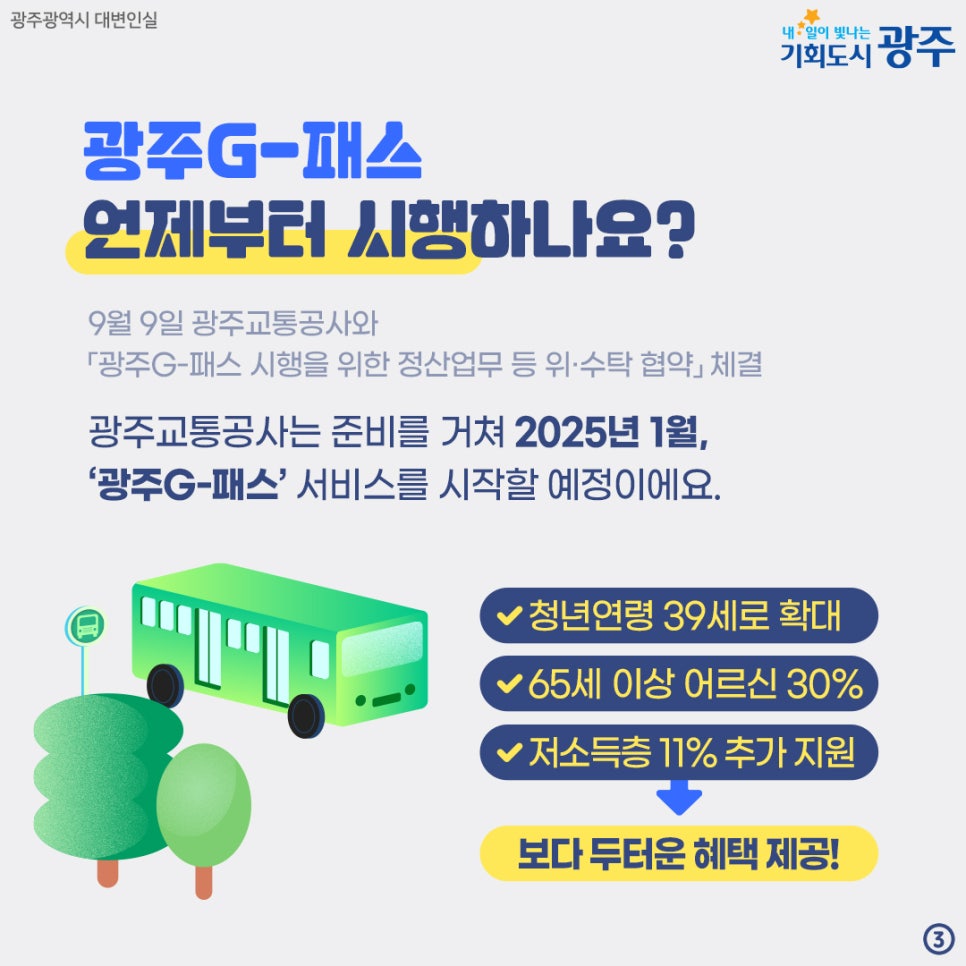 ※현재 K-패스3를 발급·등록한 시민은 내년부터 광주G-패스가 시행되면 별도의 절차 없이자동으로 광주시 추가 혜택 지원
