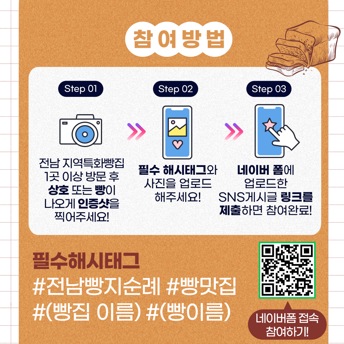 -본인 SNS에 빵 사진과 함께 필수 해시태그( #전남빵지순례 #빵맛집 #(지역특화빵재료) #(빵집이름)#(빵이름))