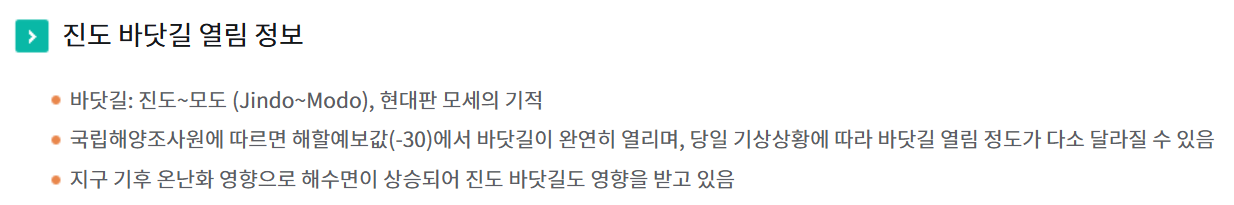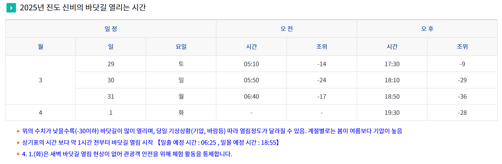 카테고리 없음 2025년 진도 신비의 바닷길 축제 소식 by 연등소리 2025. 3. 9. 반응형 바닷길: 진도~모도 (Jindo~Modo), 현대판 모세의 기적 진도 신비의 바닷길 축제 진도 바닷길 축제 공유하기 게시글 관리 연등소리 저작자표시 비영리 변경금지 (새창열림)